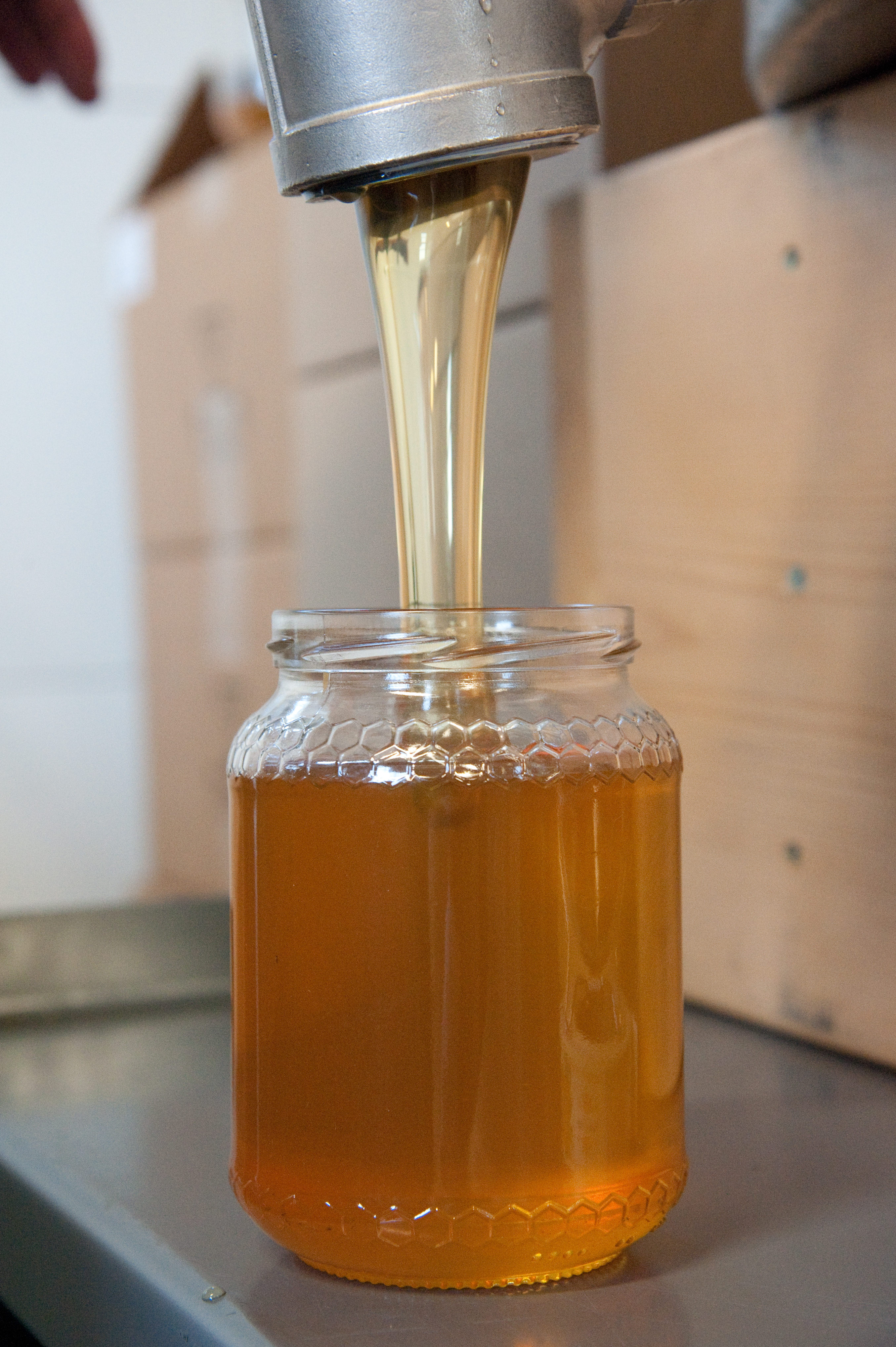 There is some confusion surrounding the term ‘Raw Honey’, but to us, it means our honey has never been heated or filtered. Conventional honey has been heated and filtered to destroy crystals and remove pollen and other small particles. This enables the packers to package their honey in plastic bears and similar containers without the likelihood of the honey solidifying (crystallizing) in the container. Unfortunately this destroys or removes most of the reasons that many people consume honey in the first place. Our honey is strained through a coarse strainer to remove chunks of wax and then allowed to settle overnight in a large tank. After settling, the honey is bottled in glass jars. The honey will crystallize in a few days to a few months depending on the floral source of the nectar. To re-liquify, merely place the jar in warm water or about 3-4 feet from a woodstove until the honey returns to liquid form. Do not heat the honey above about 112 degrees as this will damage the flavor and enzymes contained in the honey.